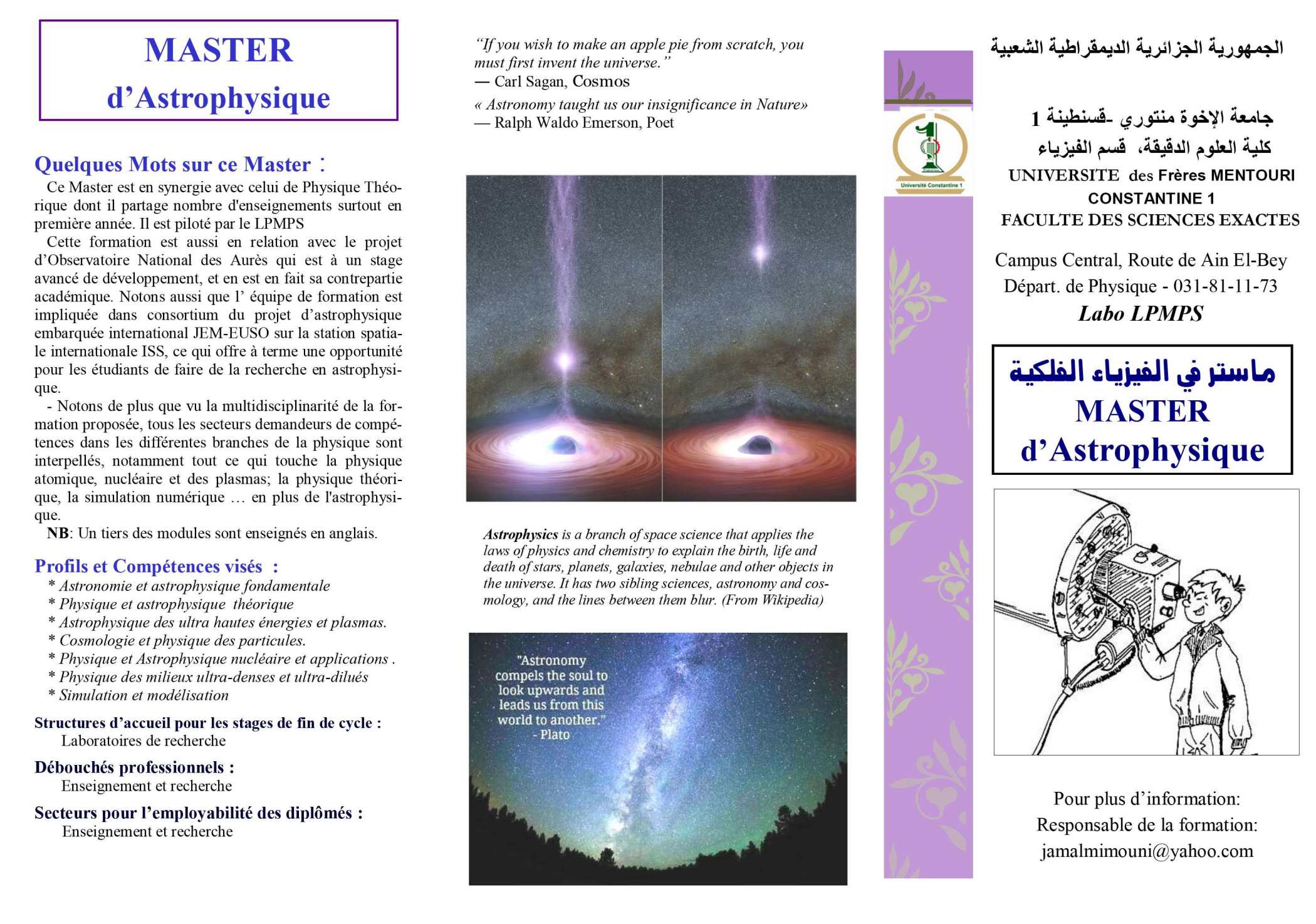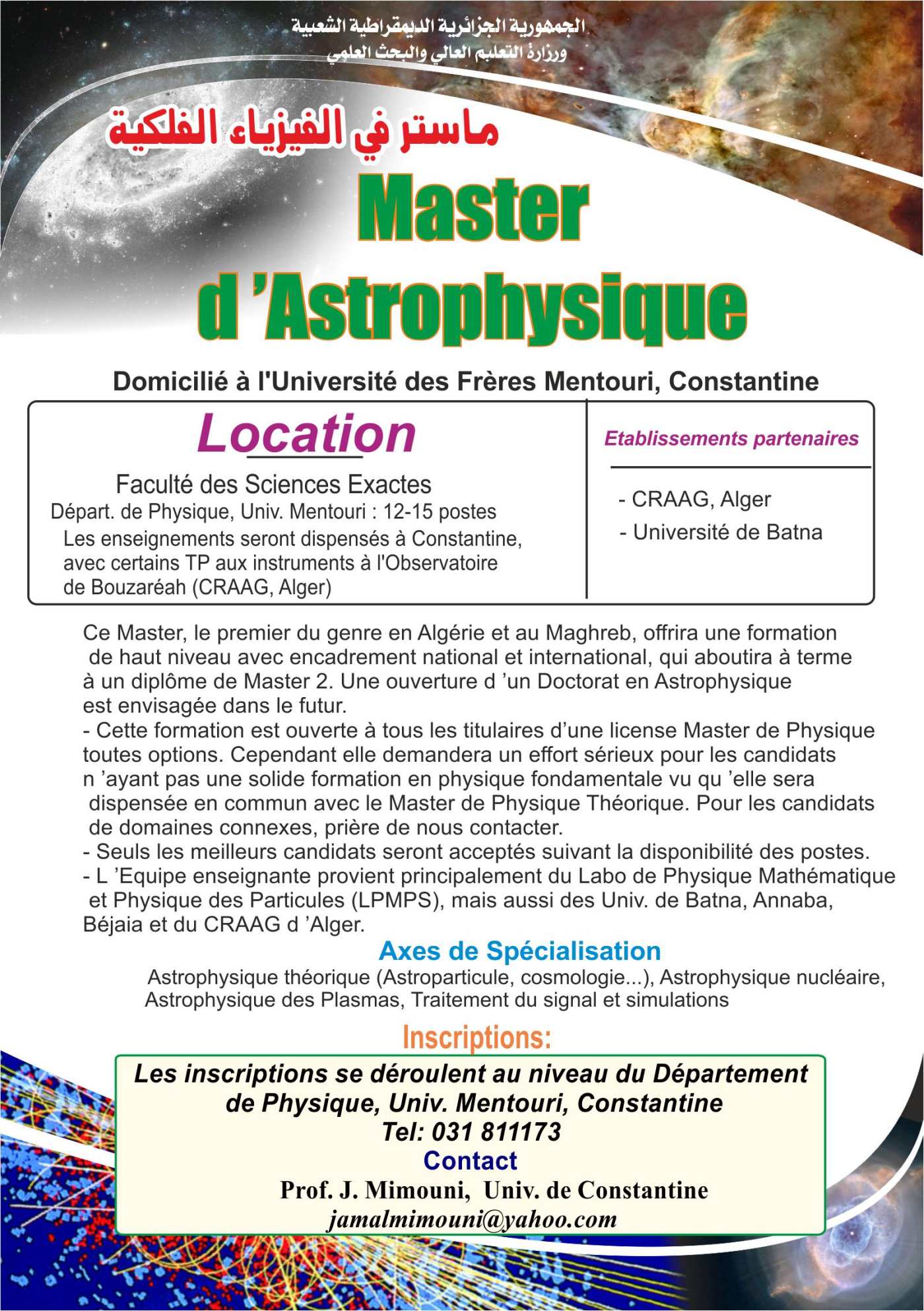 افتتاح أول ماستر في الفيزياء الفلكية في الجزائر Ouverture d'un Master d'Astrophysique |