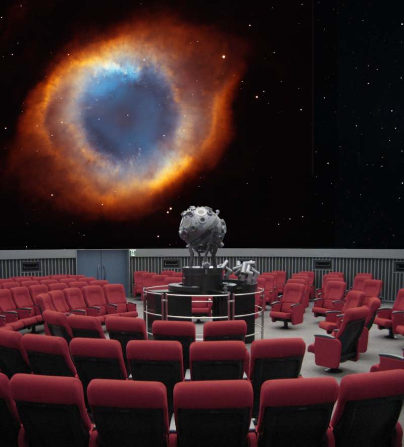 أساس القبة السماوية هو جهاز إسقاط على قبة داخلية تغطي قاعة على شكل مدرج