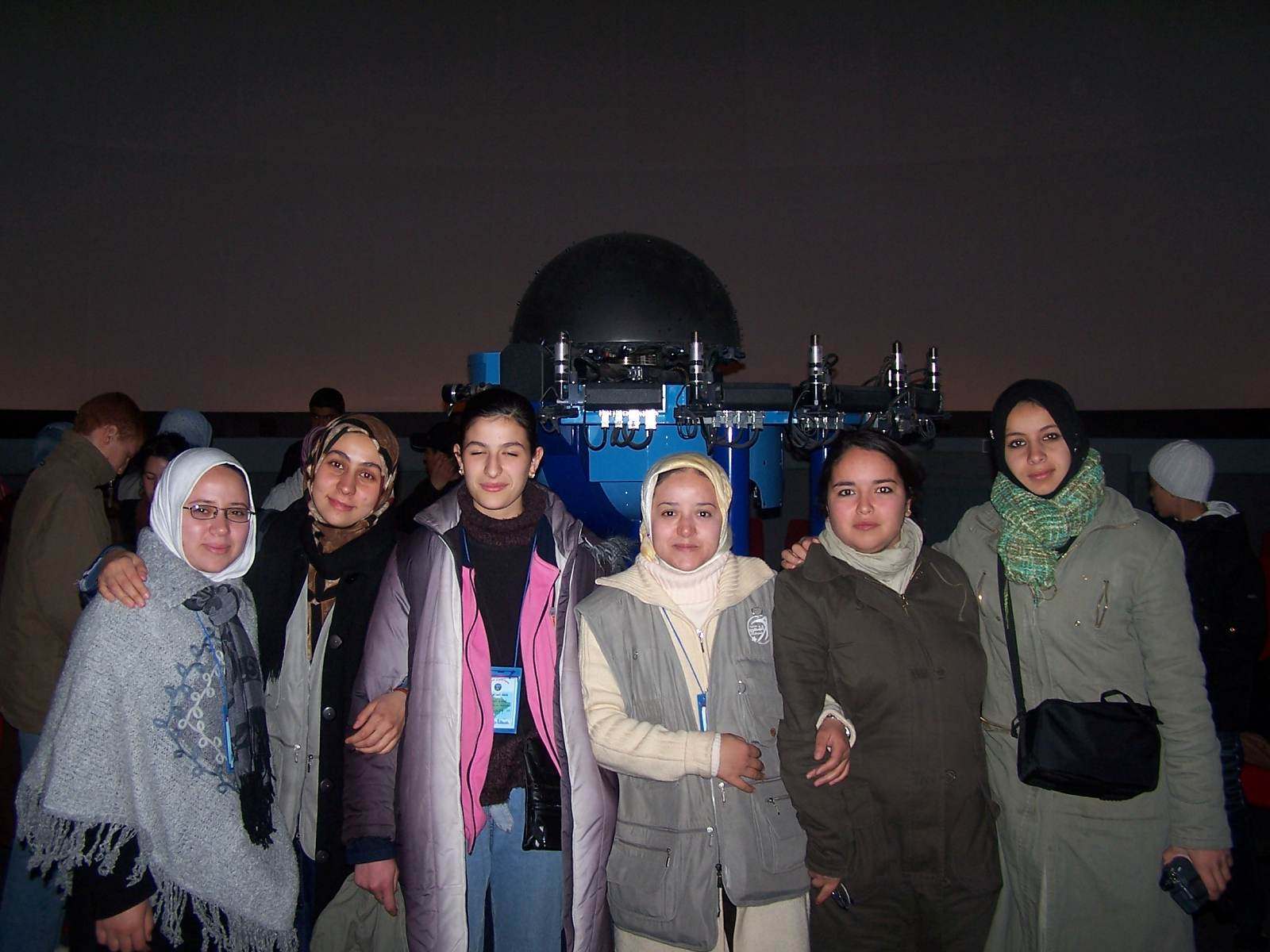 بعض المشاركين العرب من اليسار إلى اليمين: منى عنبر من النادي الكويتي، مناهل بحرالدين عمر من جامعة جوبا بالسودان، ويتوسط رئيس جمعية الشعرى لعلم الفلك كل من الرئيس الحالي لمنظمة الدولية للقبب السماوية مايزن (Tom Mason ) والرئيس المقبل (Dave Weinrich ).