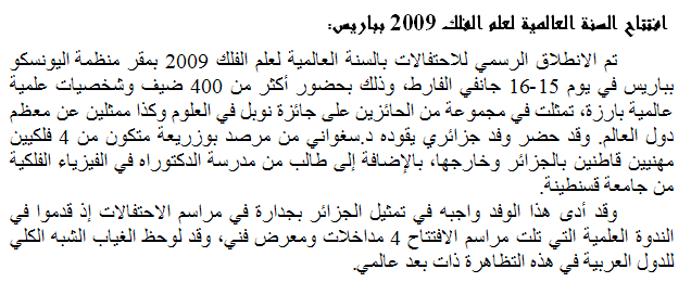an example of amateur astronomy in Algeria. Related in those
