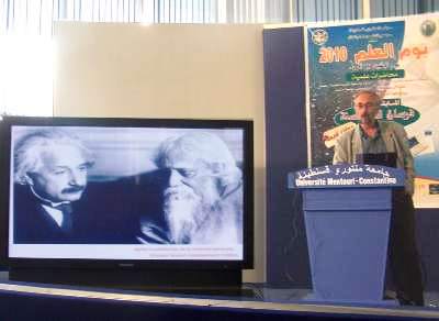 Les questions touchèrent sur tous les domaines du savoir. Ici une question ...sur la personnalité à droite d'Einstein et son oeuvre (le grand poète indien Rabindrana Tagore).