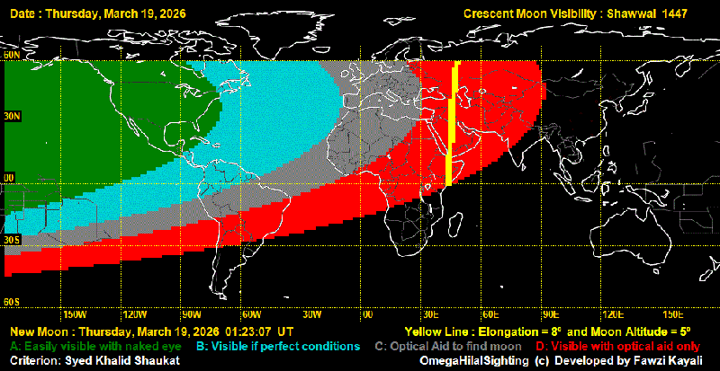 L’Etat de la visibilité du croissant le 19 March (29 du Ramadhan)